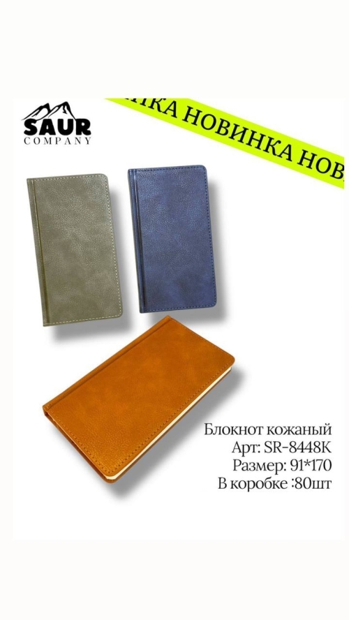 Кожаный блокнот, артикул SR-8448K. Размер — 91×170 мм. В коробке — 80 шт. 📝✨