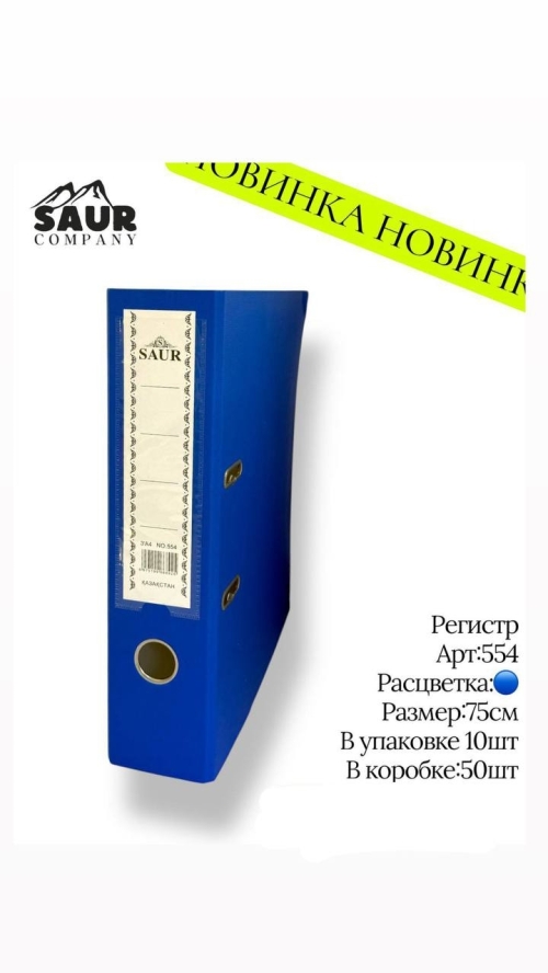 Синий регистр, артикул 554. Размер — 75 мм. В упаковке — 10 шт, в коробке — 50 шт. 📂🔵