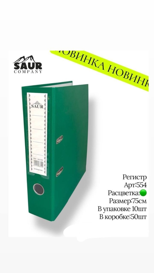 Зелёный регистр, артикул 554. Размер — 75 мм. В упаковке — 10 шт, в коробке — 50 шт. 📂💚