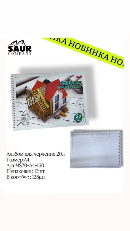 Альбом для черчения, 20 листов, артикул ЧS20-A4-160, размер А4. В упаковке — 12 шт, в коробке — 128 шт.