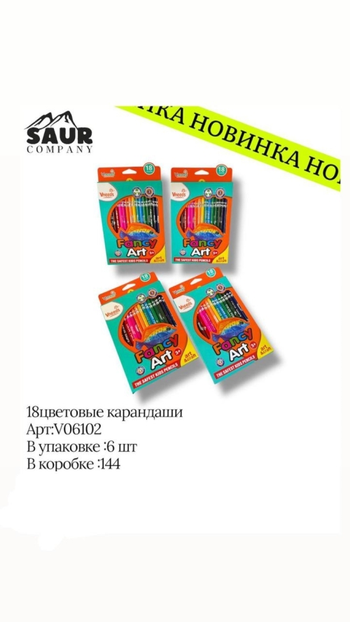 Цветные карандаши, 18 цветов, артикул V06102, в упаковке 6 шт, в коробке 144 шт.