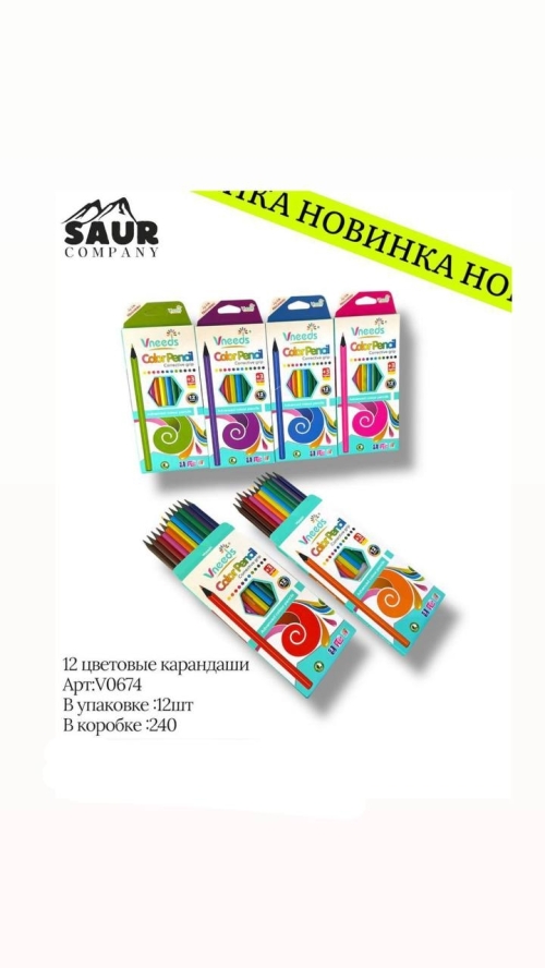 Цветные карандаши, 12 цветов, артикул V0674, в упаковке 12 шт, в коробке 240 шт.