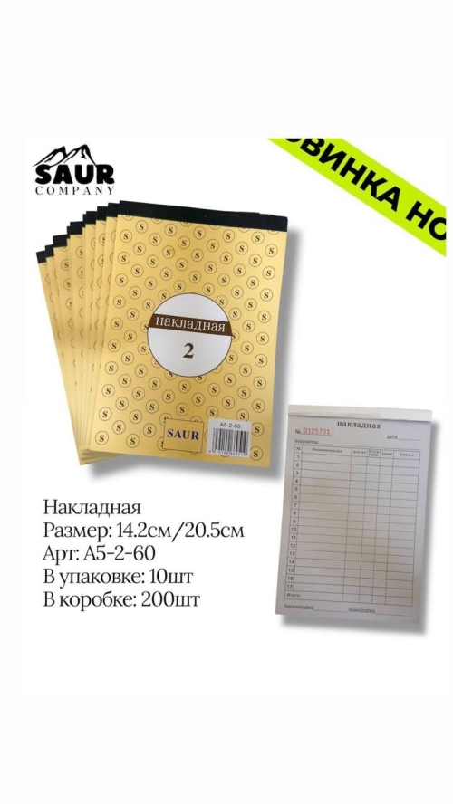 №A5-2-60 Накладная, арт.A5-2-60 Накладная, артикул A5-2-60 — удобный бланк для оформления и учёта товарных операций. Размер 14.2 × 20.5 см позволяет удобно вести записи. Внутренние страницы имеют чёткую разметку с графами для наименования, количества, цены и суммы. Подходит для использования в торговле, бухгалтерии и офисной деятельности.