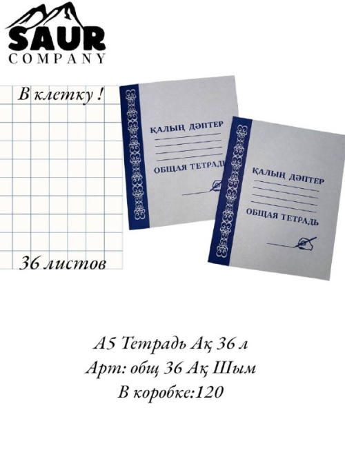№6496 Тетрадь А5, 36 листов Тетрадь формата А5, 36 листов. Компактная и удобная для учебы, работы или личных записей. Бумага хорошего качества обеспечивает легкость письма, а прочная обложка надежно защищает страницы. В коробке – 120 шт.