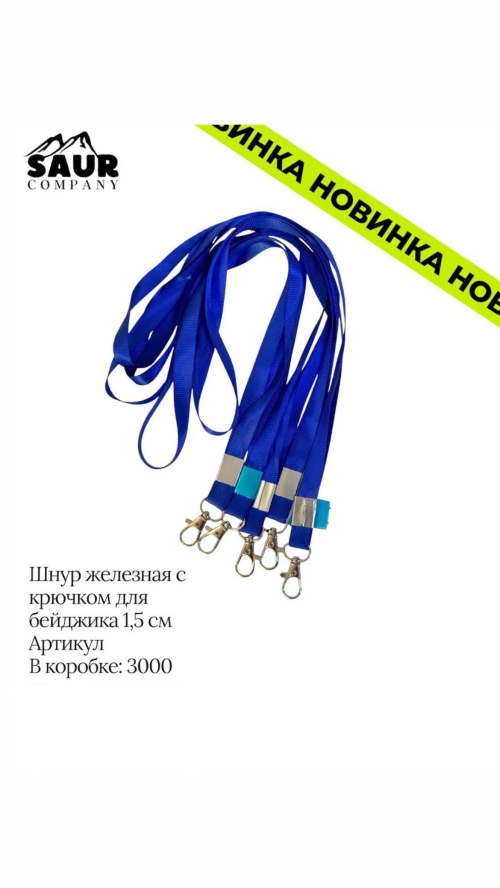 Шнур с металлическим крючком для бейджика, 1.5 см В коробке: 3000 шт